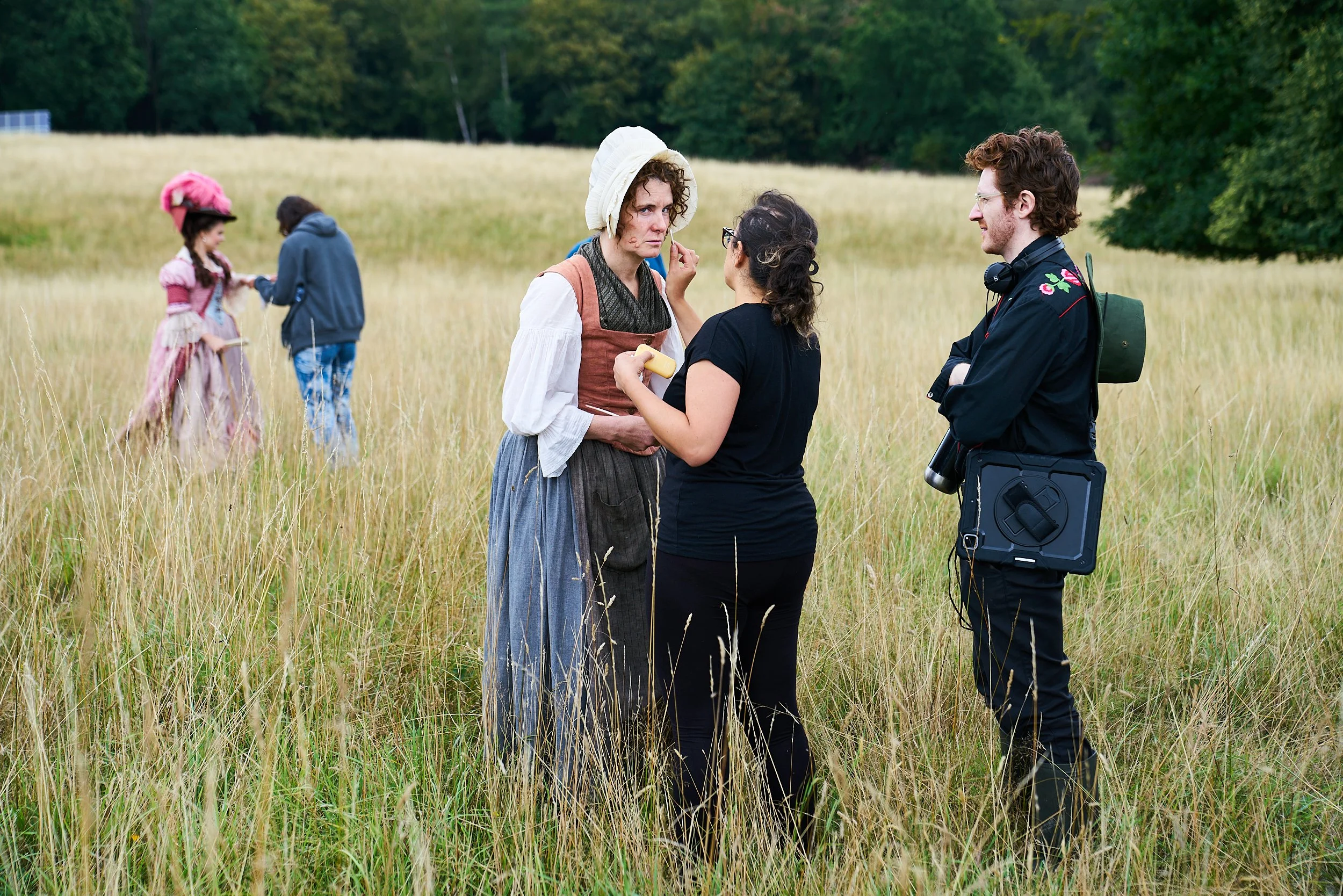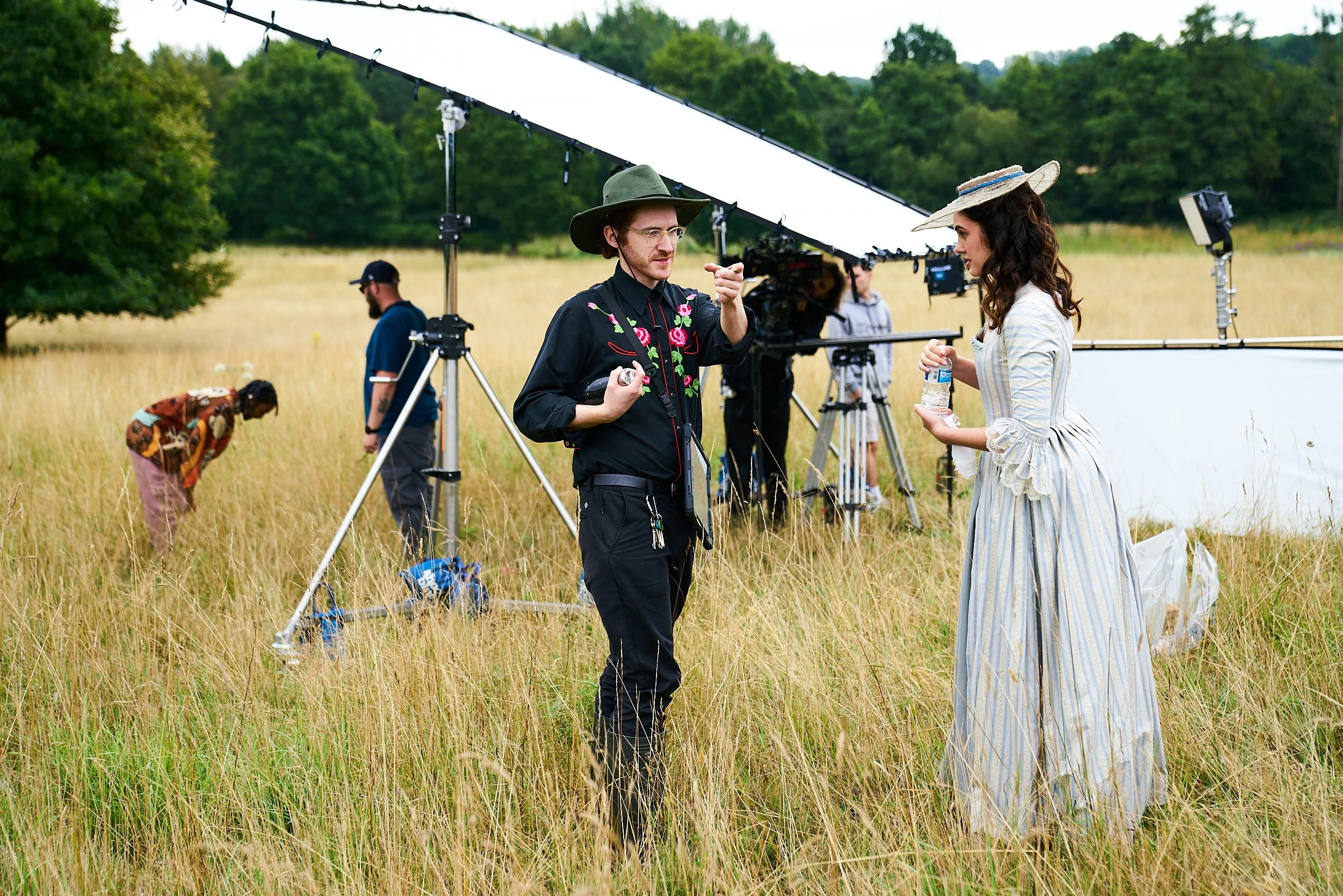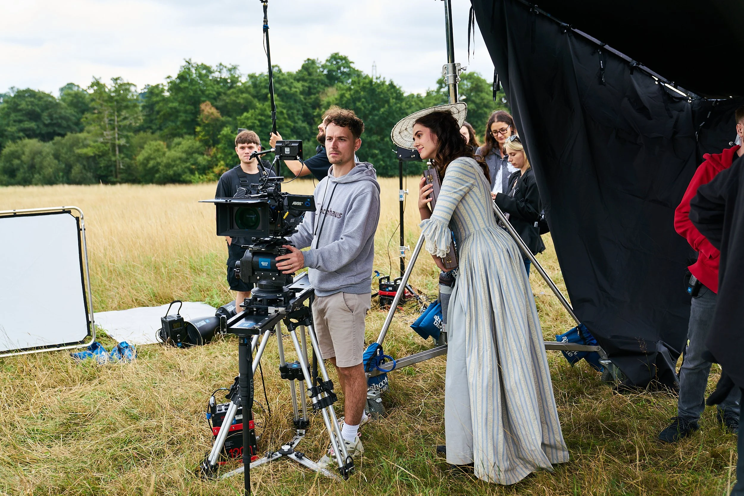 Fields. It's surprisingly hard to find a field / landscape that offered compositional possibilities, where you don't risk some member of the public slowly traipsing across the back of the frame. We realised the answer was to find a location that had private grounds, likely a stately home. However, these came with a hefty price tag, and often their lawns were too manicured. Finally, one of our producers Nathan Craig, found a stately home (that anecdotally, had briefly been owned by Led Zepplin) that wasn't on a location library, which was sympathetic to our project and had natural and photogenic grounds.